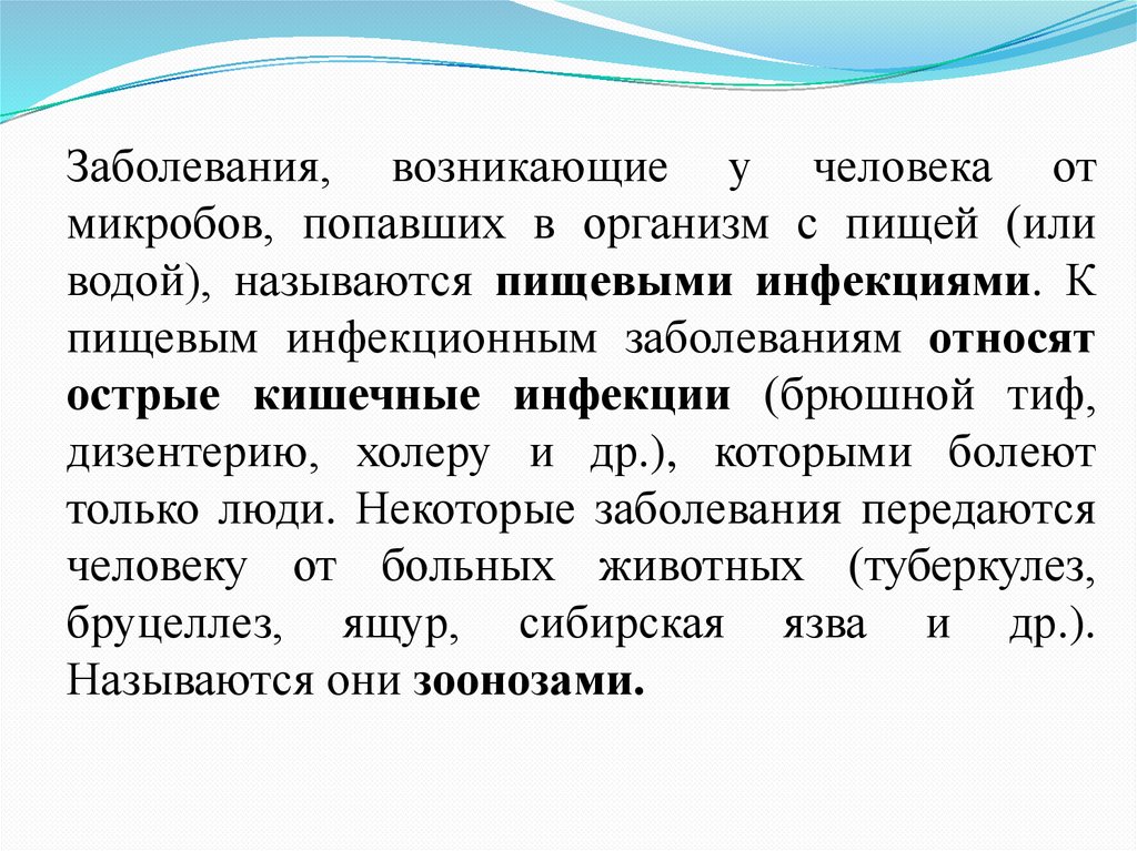 Заболевания, возникающие у человека отмикробов, попавших в организм с пищей (или