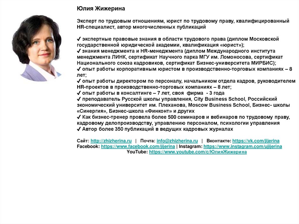 Юлия ЖижеринаЭксперт по трудовым отношениям, юрист по трудовому праву, квалифицированный