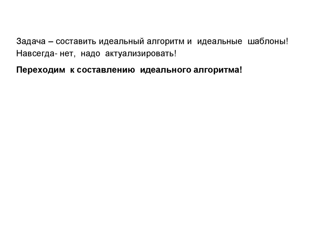 Задача – составить идеальный алгоритм и идеальные шаблоны!Навсегда- нет, надо актуализировать!