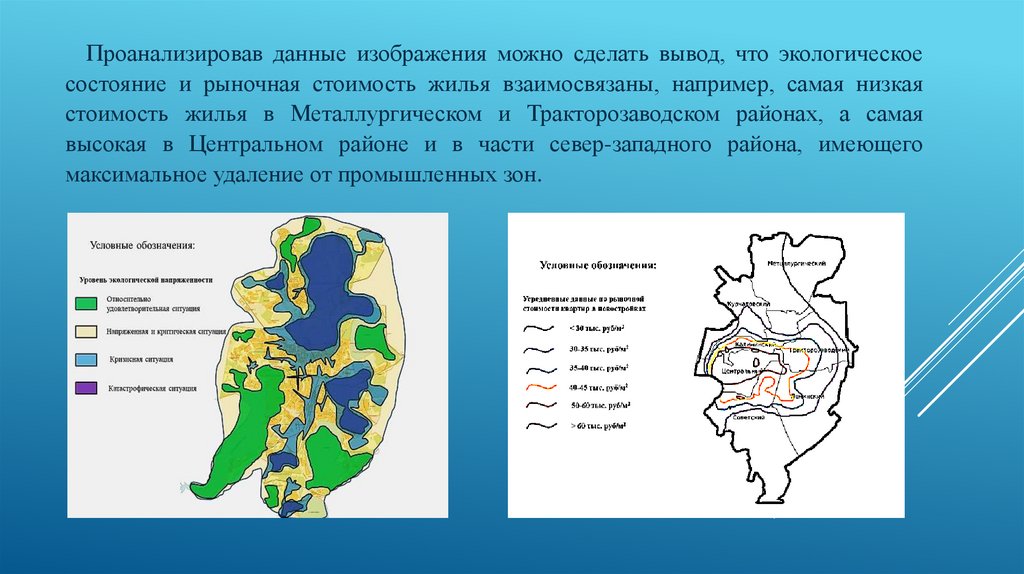 Проанализировав данные изображения можно сделать вывод, что экологическоесостояние и рыночная стоимость жилья взаимосвязаны, например, самая низкая