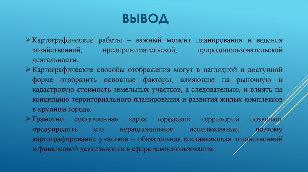 ВЫВОДКартографические работы – важный момент планирования и ведения