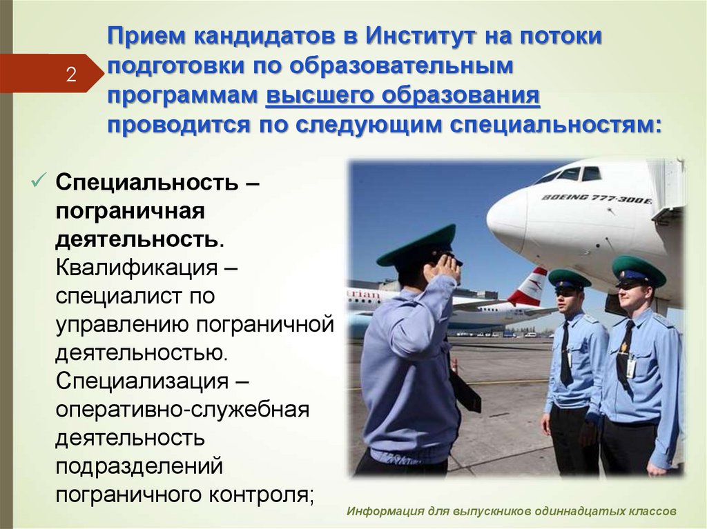 а) для специальности «Пограничная деятельность»: