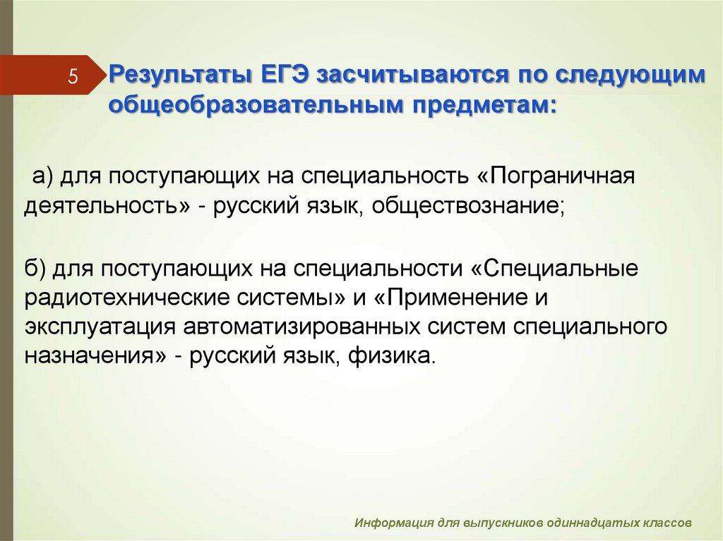 5Результаты ЕГЭ засчитываются по следующим