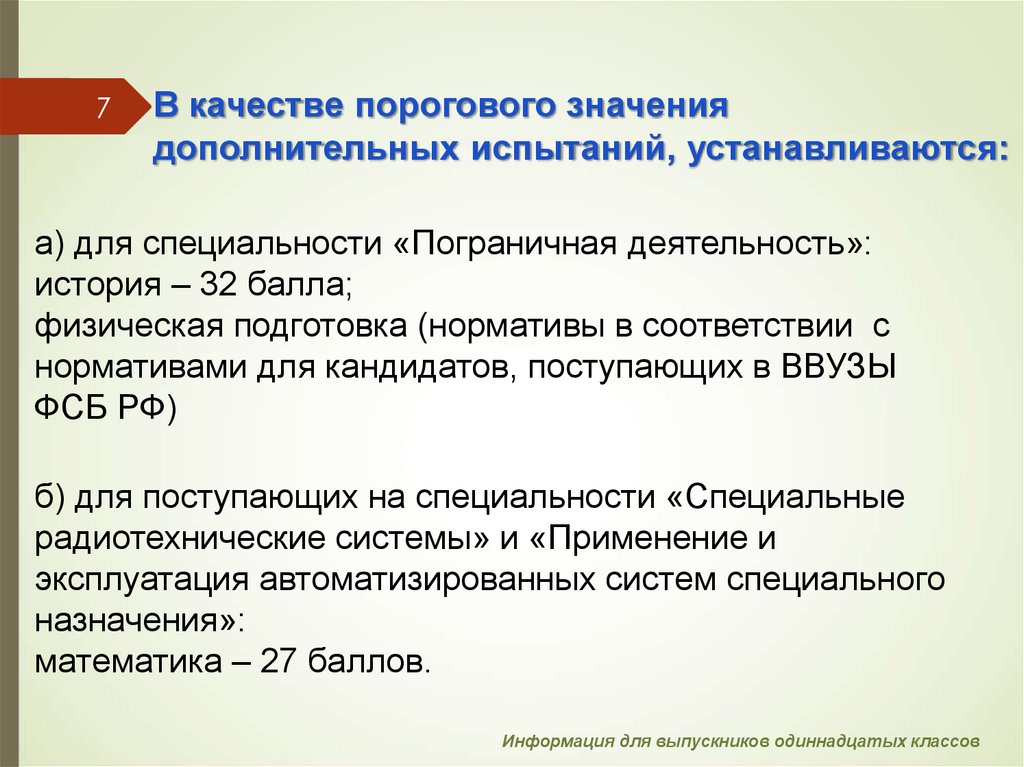 а) для поступающих на специальность «Пограничная