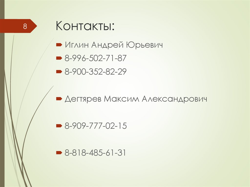 8Контакты: