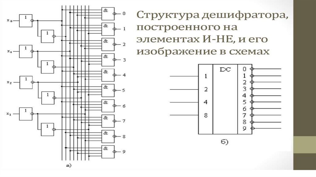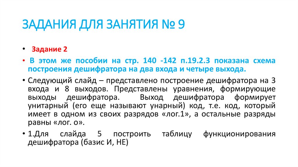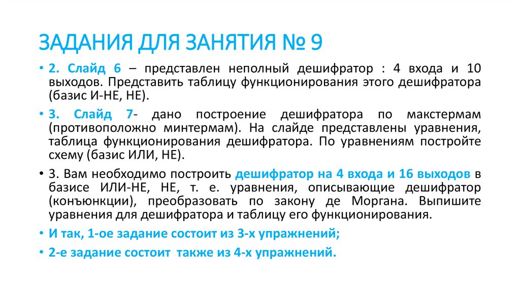 ЗАДАНИЯ ДЛЯ ЗАНЯТИЯ № 9• 2. Слайд 6 – представлен неполный дешифратор : 4 входа и 10