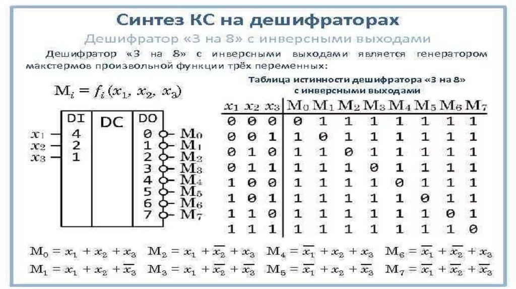 • 3. Слайд 7- дано построение дешифратора по макстермам