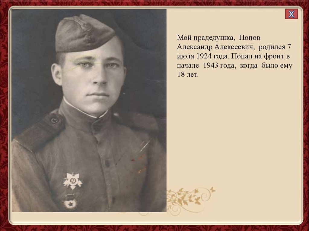 Мой прадедушка, ПоповАлександр Алексеевич, родился 7