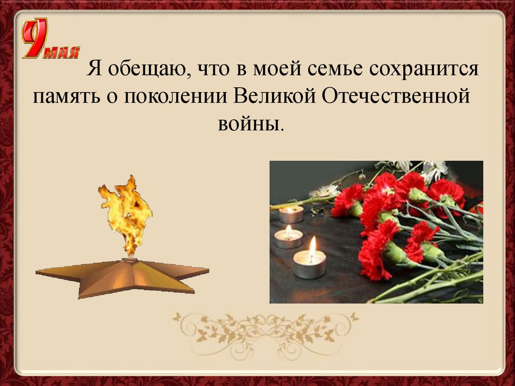 Я обещаю, что в моей семье сохранитсяпамять о поколении Великой Отечественной