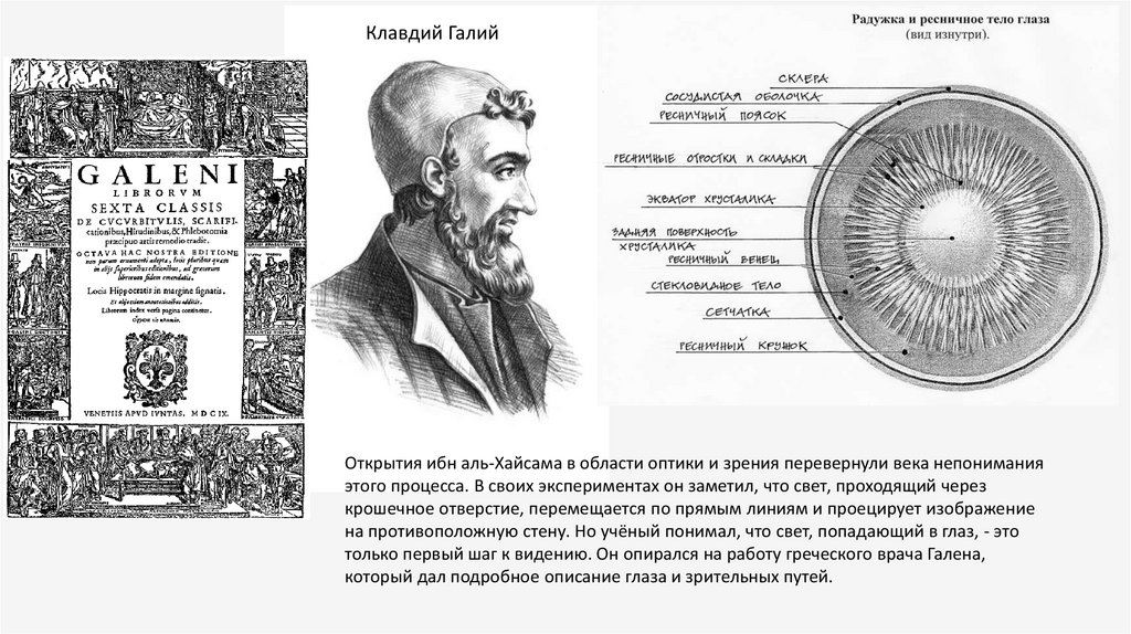 Клавдий ГалийОткрытия ибн аль-Хайсама в области оптики и зрения перевернули века непонимания