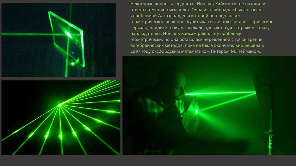 Некоторые вопросы, поднятые Ибн аль-Хайсамом, не находилиответа в течение тысячи лет. Одна из таких задач была названа