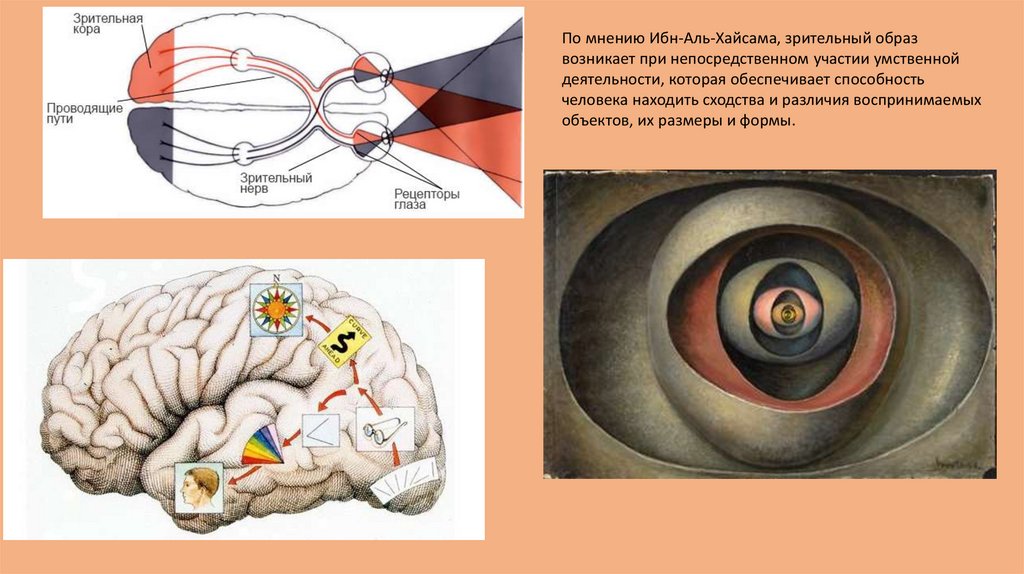 По мнению Ибн-Аль-Хайсама, зрительный образвозникает при непосредственном участии умственной