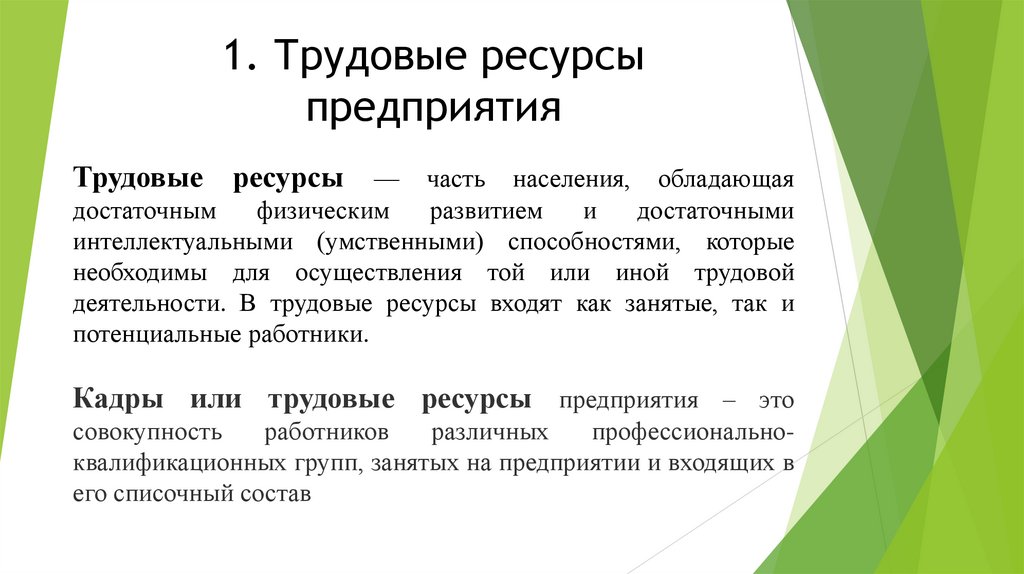 Трудовые ресурсы. Мотивация труда. Кадровый потенциал
