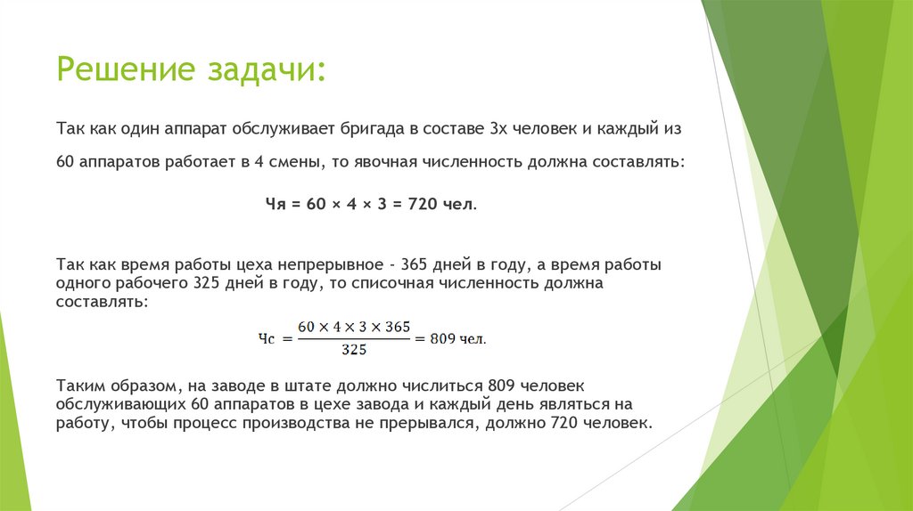 работу, чтобы процесс производства не прерывался, должно 720 человек.