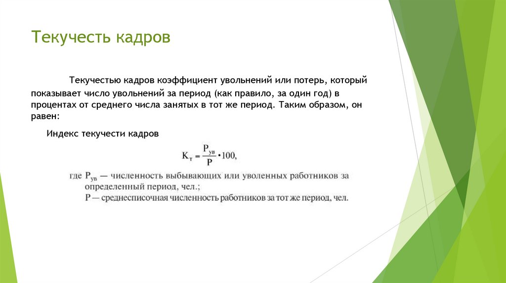 Текучесть кадровТекучестью кадров коэффициент увольнений или потерь, который