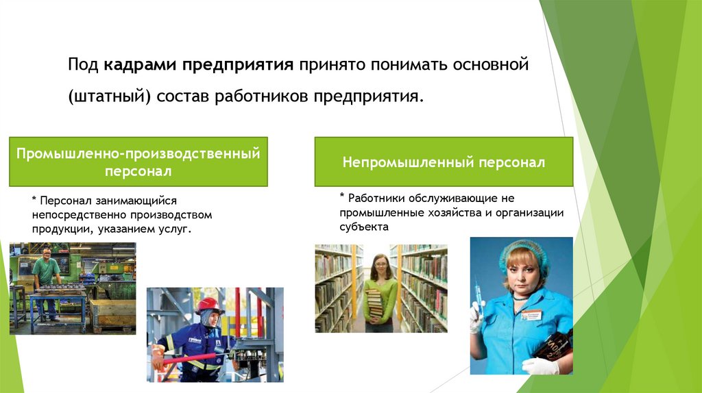 Под кадрами предприятия принято понимать основной(штатный) состав работников предприятия.