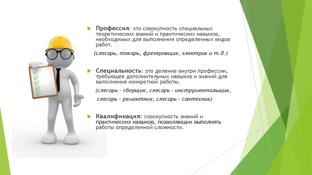 Профессия: это совокупность специальныхтеоретических знаний и практических навыков,