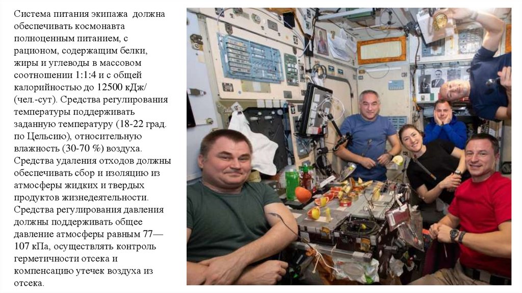 Атмосфера в космических кораблях, из-заих скромных размеров, может изменять