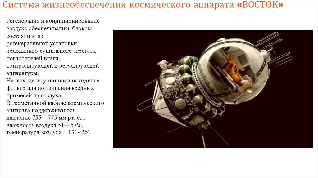 Система жизнеобеспечения космического аппарата «ВОСТОК»Регенерация и кондиционирование