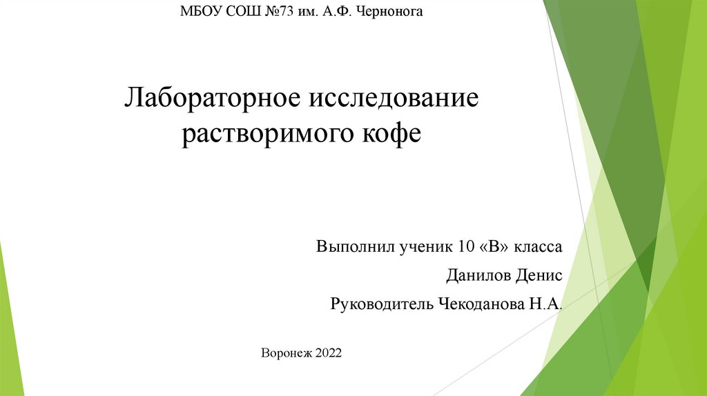 МБОУ СОШ №73 им. А.Ф. ЧерноногаЛабораторное исследование