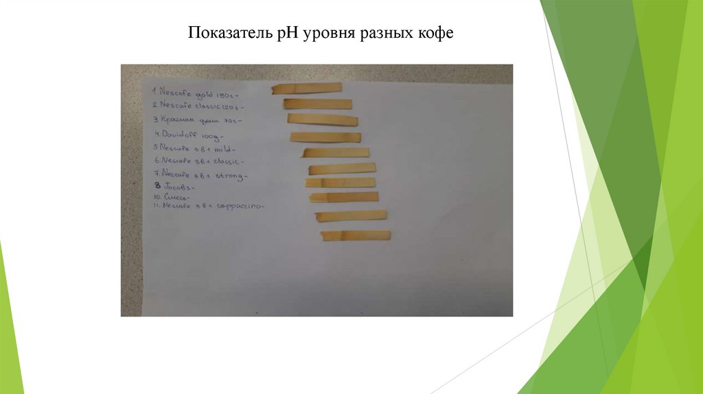 Показатель pH уровня разных кофе12.