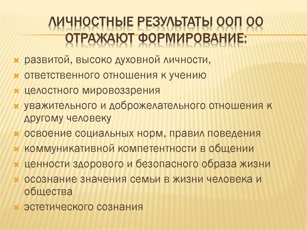 ЛИЧНОСТНЫЕ РЕЗУЛЬТАТЫ ООП ОООТРАЖАЮТ ФОРМИРОВАНИЕ: