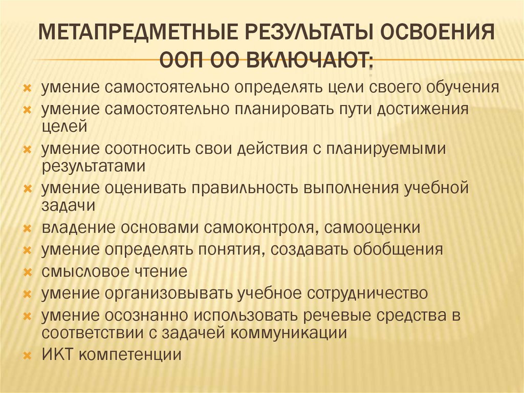 МЕТАПРЕДМЕТНЫЕ РЕЗУЛЬТАТЫ ОСВОЕНИЯООП ОО ВКЛЮЧАЮТ:
