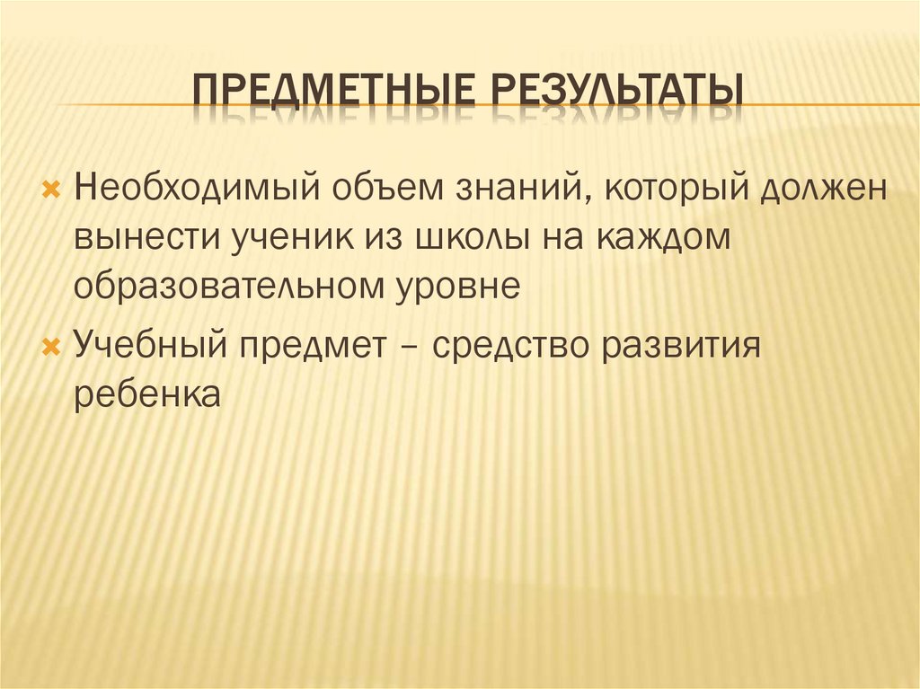 ПРЕДМЕТНЫЕ РЕЗУЛЬТАТЫНеобходимый объем знаний, который должен