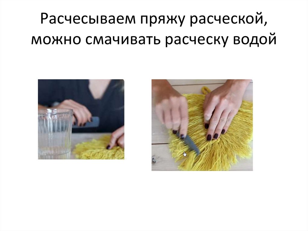 Расчесываем пряжу расческой,можно смачивать расческу водой