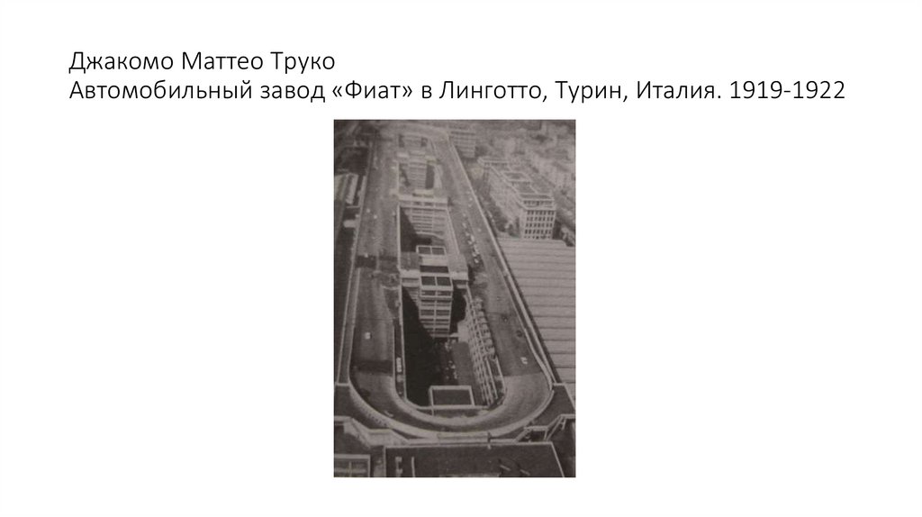 Джакомо Маттео ТрукоАвтомобильный завод «Фиат» в Линготто, Турин, Италия. 1919-1922