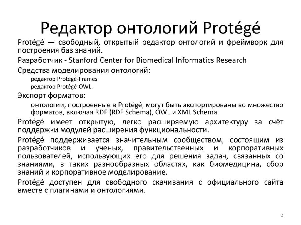 Редактор онтологий ProtégéProtégé — свободный, открытый редактор онтологий и фреймворк для