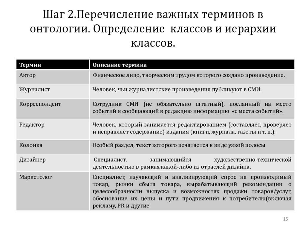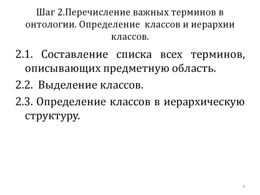 Шаг 2.Перечисление важных терминов вонтологии. Определение классов и иерархии
