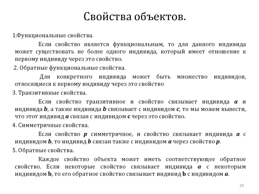 свойство. Если некоторые свойство связывает индивида а с некоторым