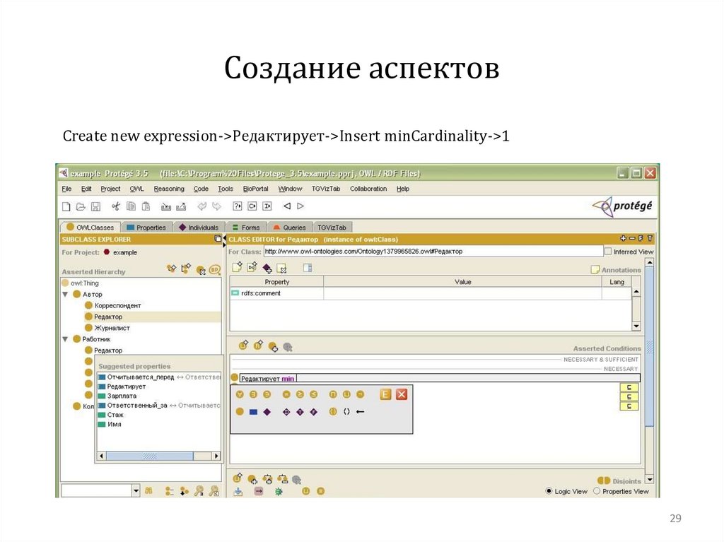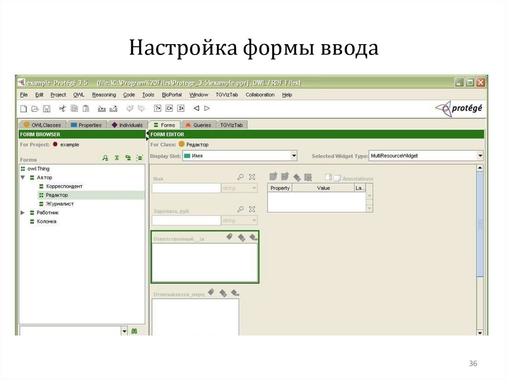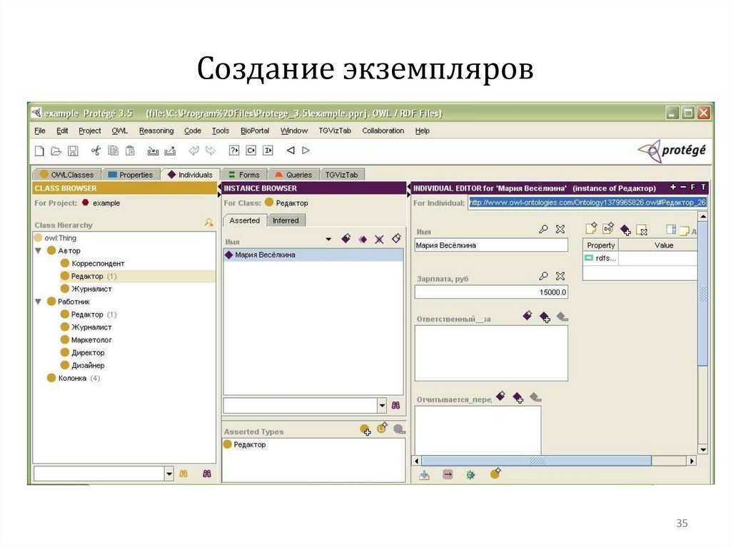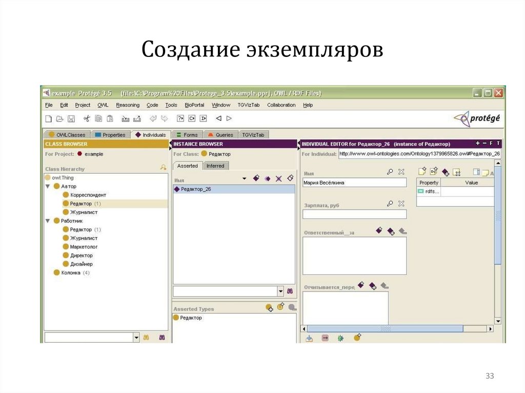 Редактор Protégé-OWLРедактор Protégé-OWL позволяет пользователям