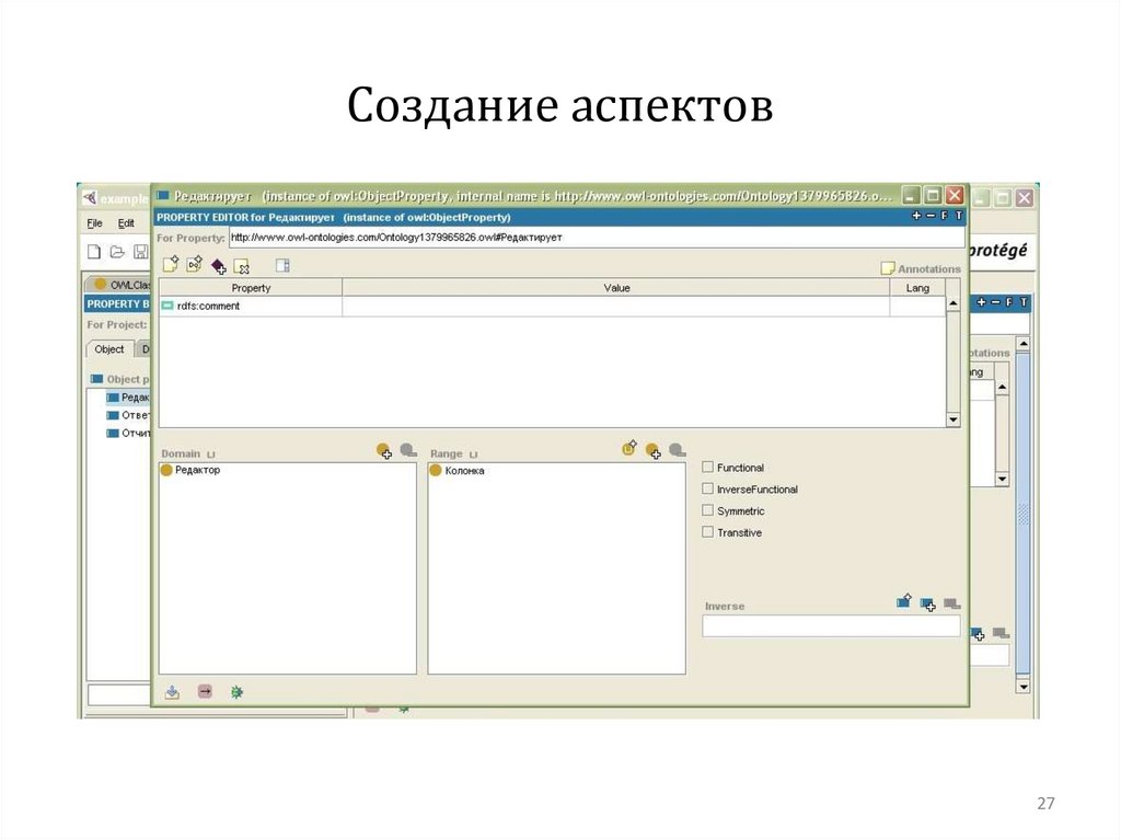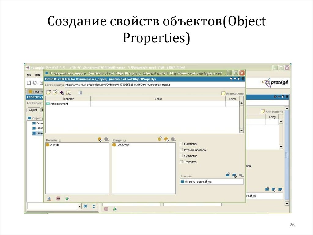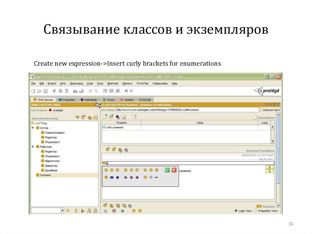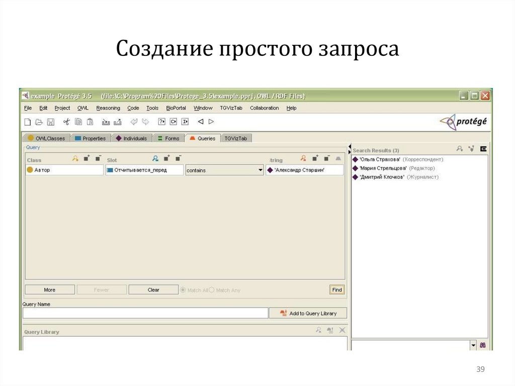 Редактор Protégé-OWLРедактор Protégé-OWL позволяет пользователям