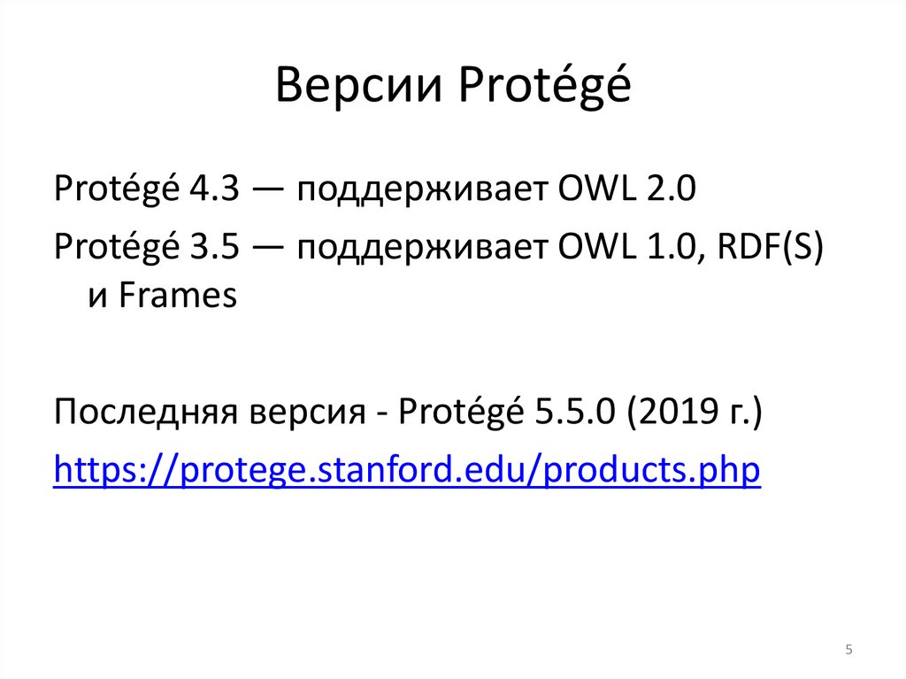 Последняя версия - Protégé 5.5.0 (2019 г.)
