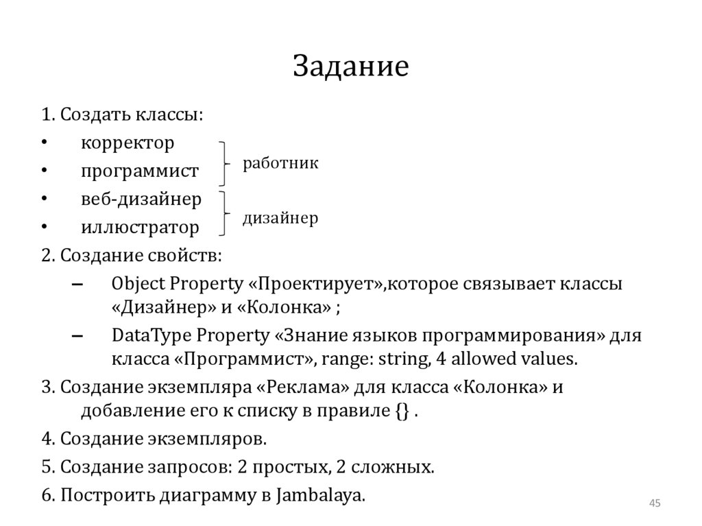 Создание онтологии в редакторе Protege. Контрольная работа №2