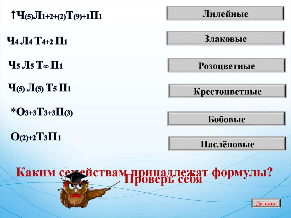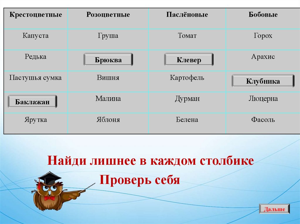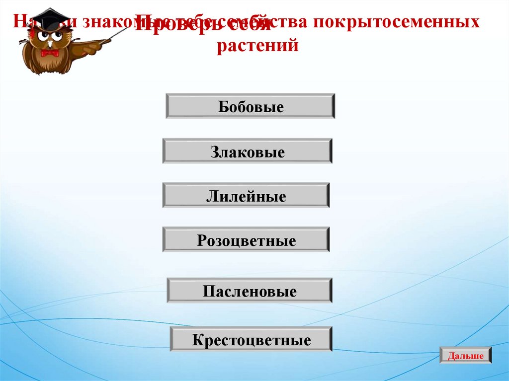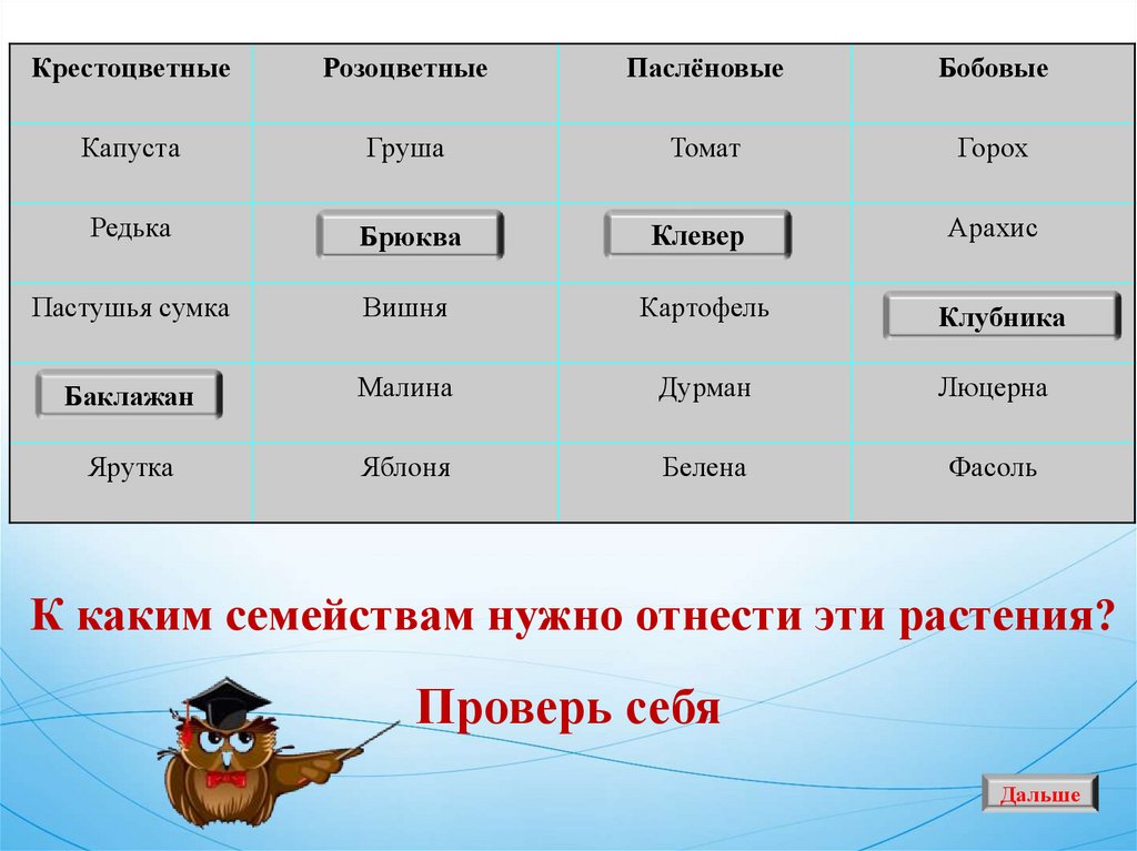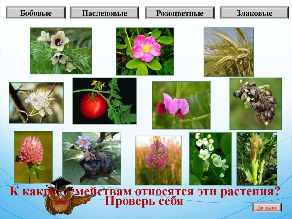 Проверочная работа по теме «Семейства покрытосеменных растений»