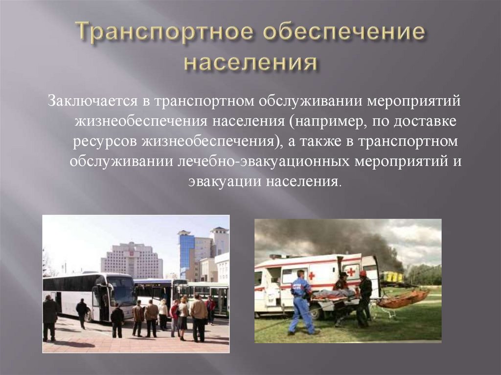 ресурсов жизнеобеспечения), а также в транспортном