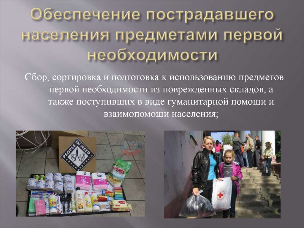 Обеспечение пострадавшего населения предметами первой