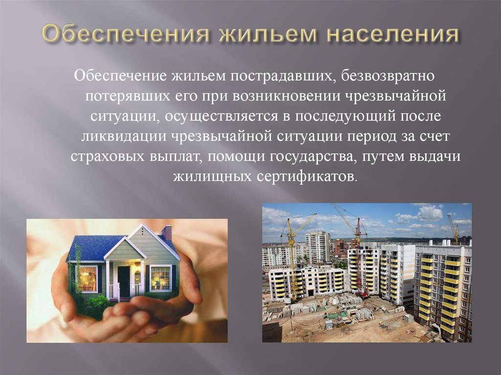 Обеспечение жильем пострадавших, безвозвратнопотерявших его при возникновении чрезвычайной