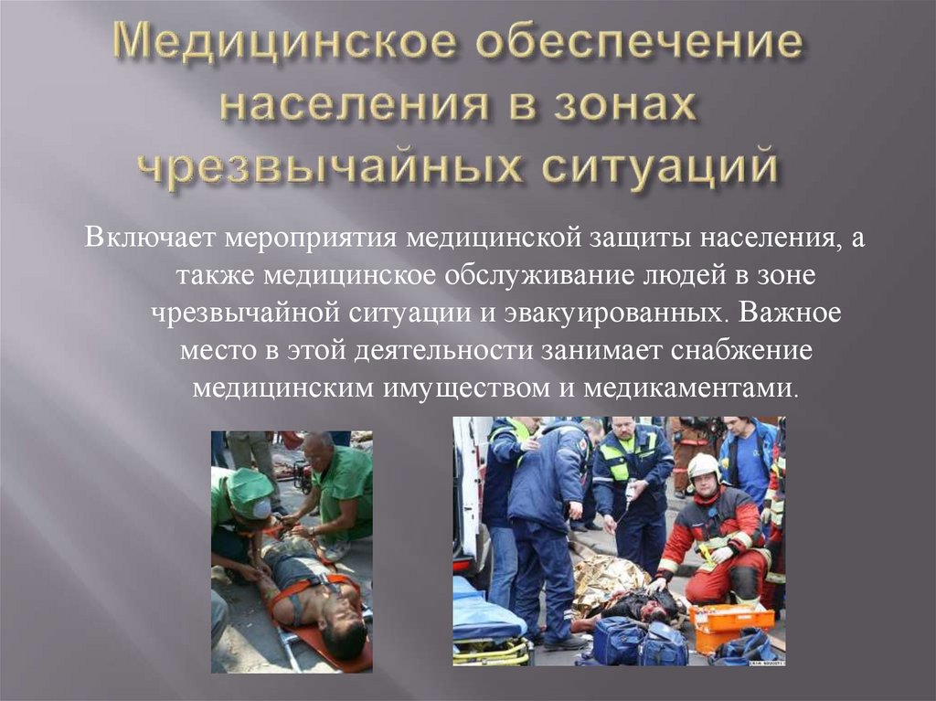 Включает мероприятия медицинской защиты населения, атакже медицинское обслуживание людей в зоне