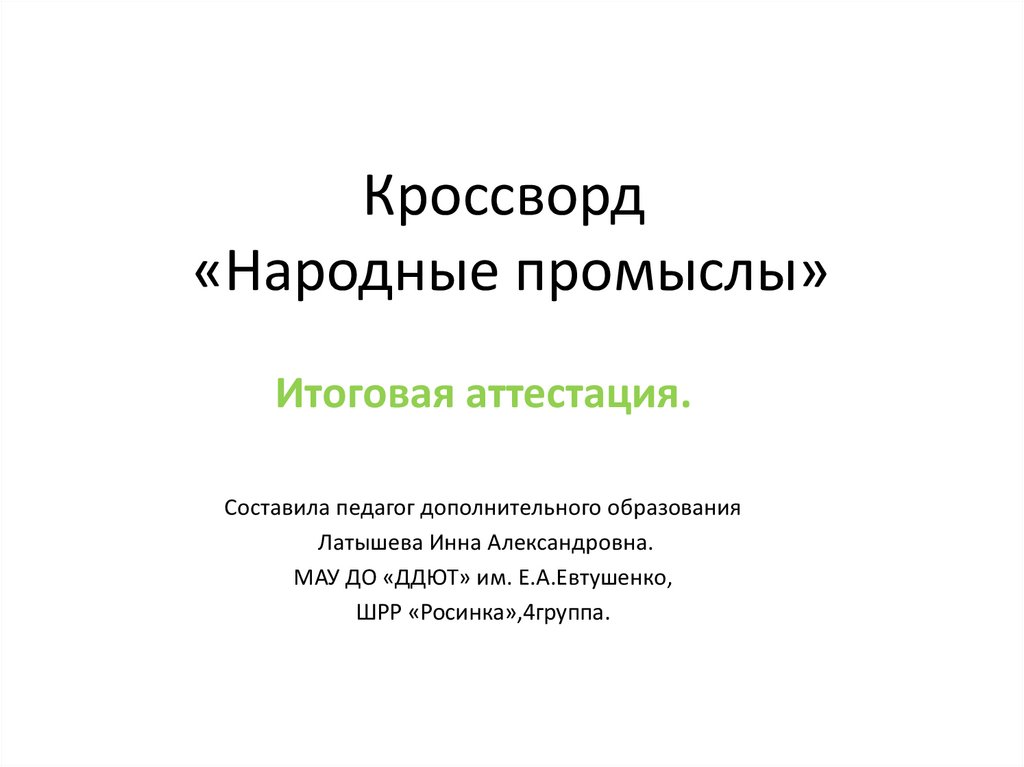 Кроссворд «Народные промыслы». Итоговая аттестация