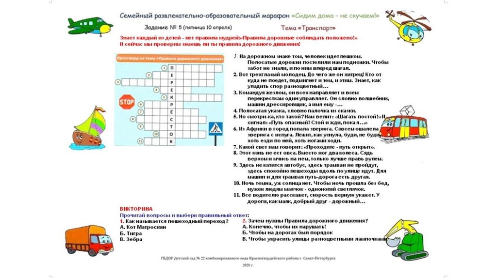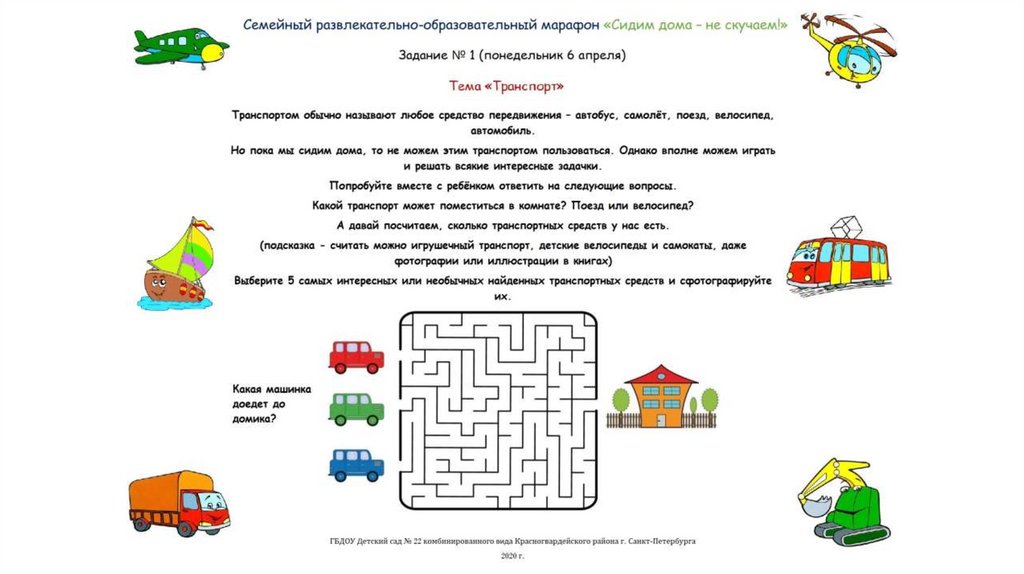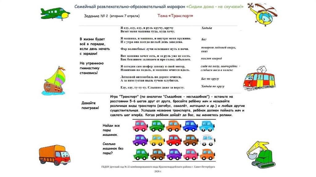 Дистанционная работа по теме "Транспорт для детей 3 - 7 лет"
