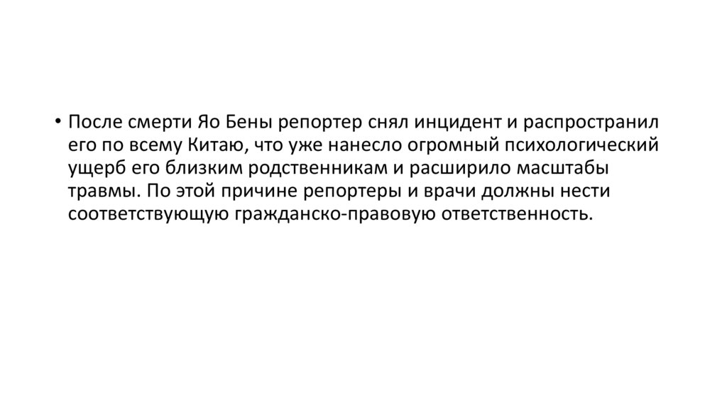 • После смерти Яо Бены репортер снял инцидент и распространилего по всему Китаю, что уже нанесло огромный психологический