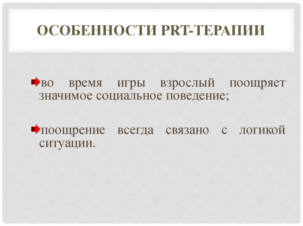 ОСОБЕННОСТИ PRT-ТЕРАПИИво время игры взрослый поощряет