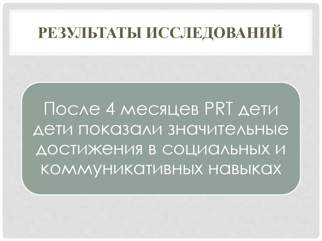 РЕЗУЛЬТАТЫ ИССЛЕДОВАНИЙПосле 4 месяцев PRT дети