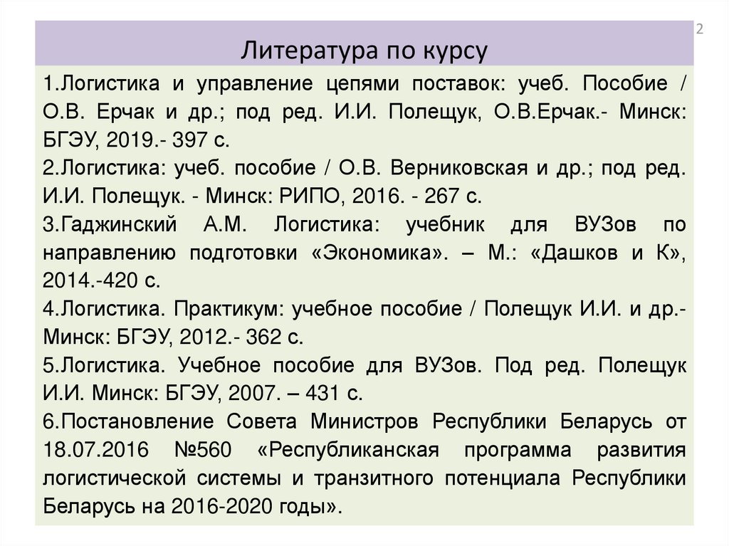 Литература по курсу1.Логистика и управление цепями поставок: учеб. Пособие /