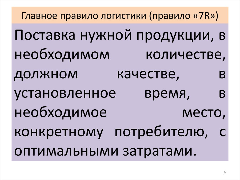 Главное правило логистики (правило «7R»)Поставка нужной продукции, в