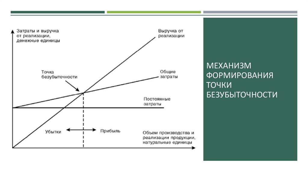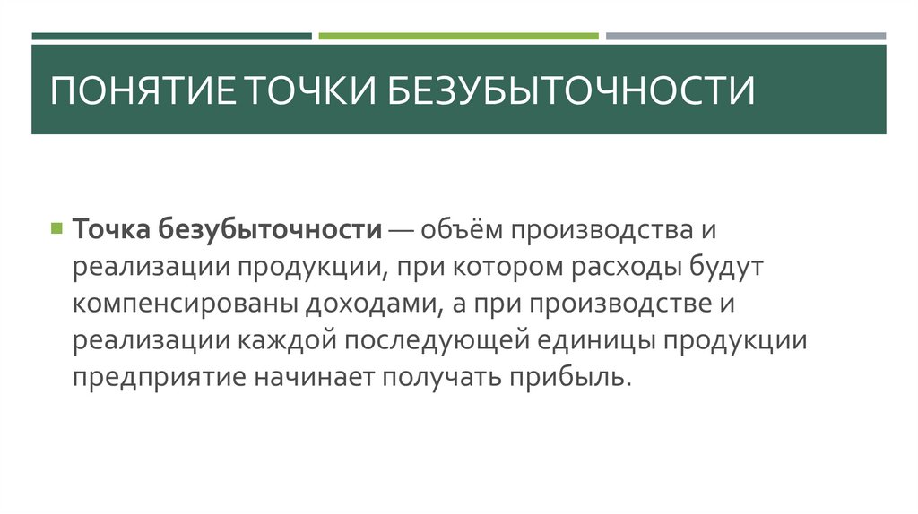 ПОНЯТИЕ ТОЧКИ БЕЗУБЫТОЧНОСТИТочка безубыточности — объём производства и